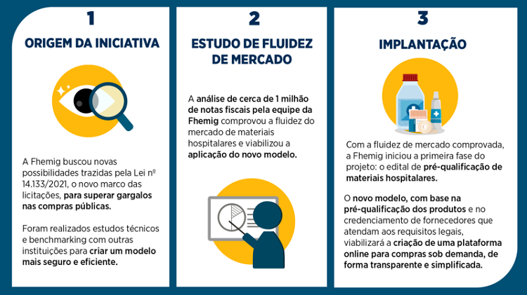 A Fundação Hospitalar do Estado de Minas Gerais (Fhemig) tornou-se a primeira instituição de Minas Gerais a publicar um edital de pré-qualificação de produtos para compras públicas. Com o apoio da Secretaria de Planejamento e Gestão de Minas Gerais (Seplag-MG), a instituição está implantando o projeto Marketplace: uma remodelagem da estratégia de compras que poderá reduzir em até 80% o tempo médio de aquisição de insumos, permitindo reposições pontuais sempre que necessário.