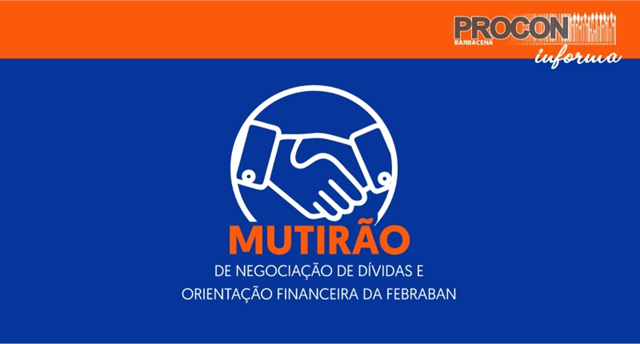 O Procon Municipal de Barbacena traz esclarecimentos sobre a oportunidade para regularização de débitos bancários através do Mutirão Nacional de Negociação de Dívidas e Orientação Financeira. Essa é uma ação promovida pela Federação Brasileira de Bancos (Febraban), em parceria com o Banco Central do Brasil (BCB), a Secretaria Nacional do Consumidor (Senacon) e a Associação Procons Brasil